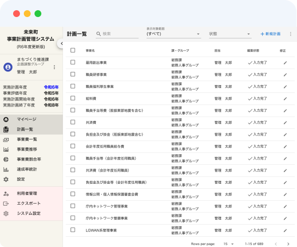 J-Plan Proの導入後は、事前の期待通り職員の作業時間が大幅に削減でき、各事業の進捗管理も適切な頻度で行えるようになりました。また事業の状況が一発でグラフ化できる為、各種資料等の作成も短時間で済むようになり、町全体の業務効率が大幅に向上したことを実感しています。